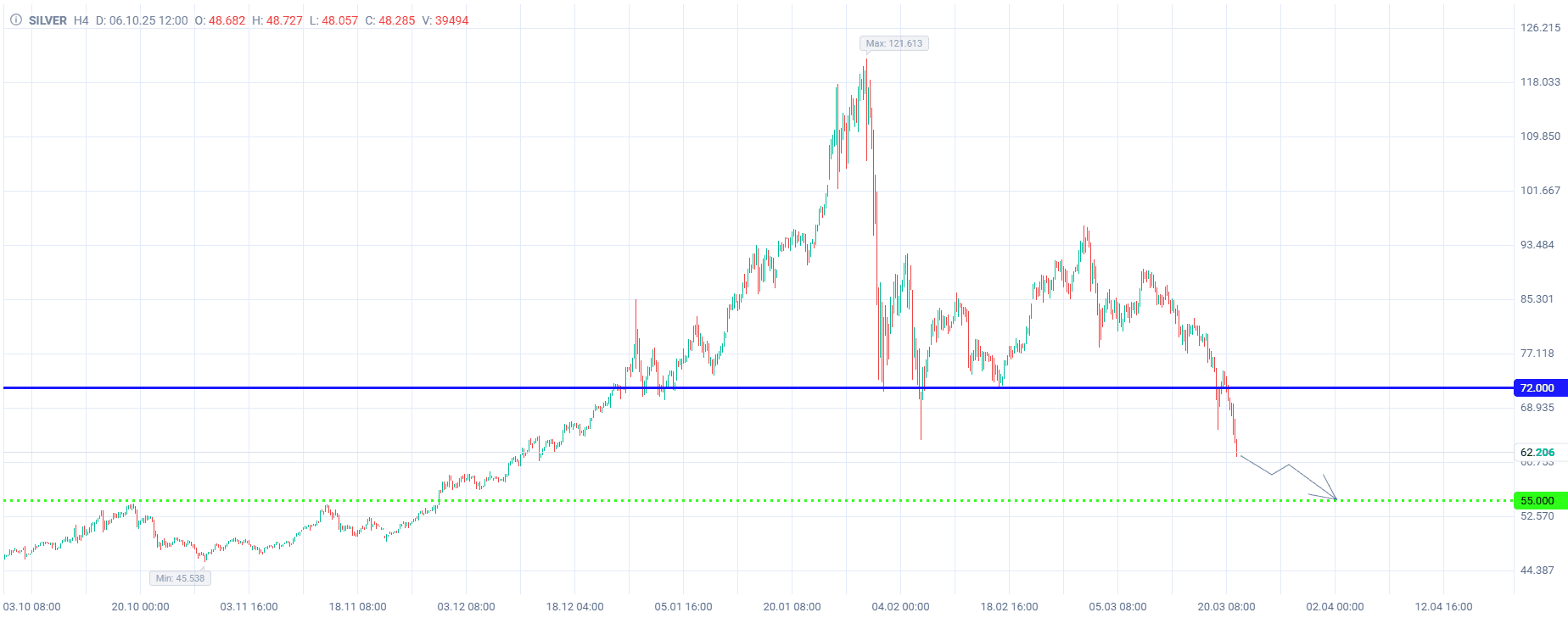 Selling silver down to $55