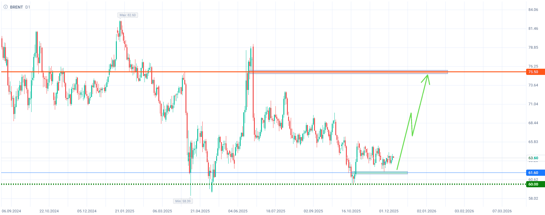 Покупка нефти Brent с целью $75,5