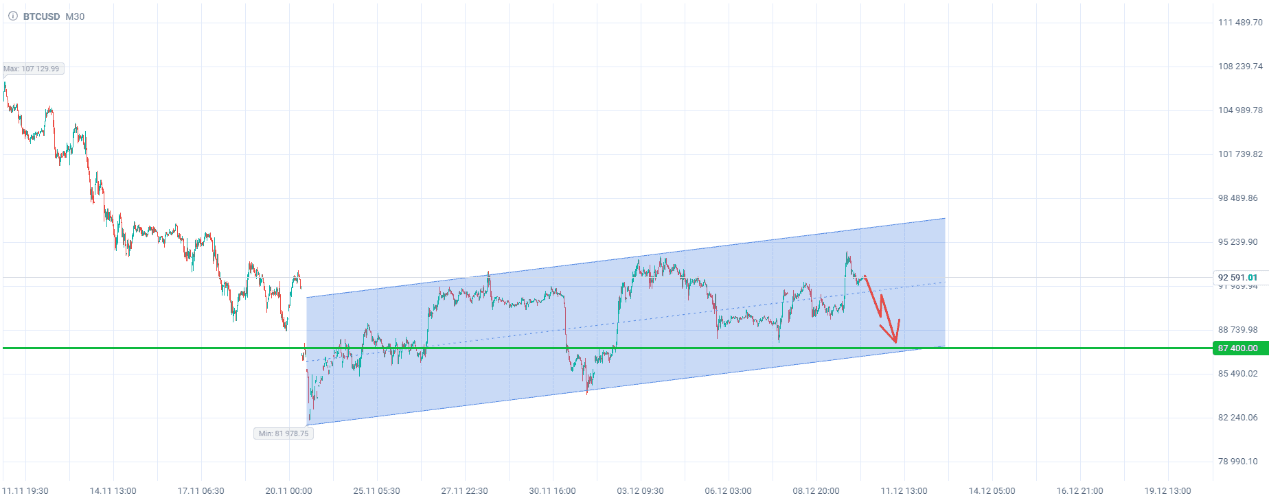 Продажа биткоина до уровня $87400