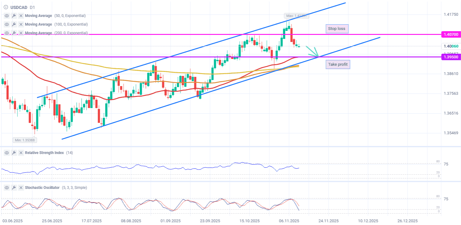 USDCAD готовится протестировать нижнюю границу канала на уровне 1,395