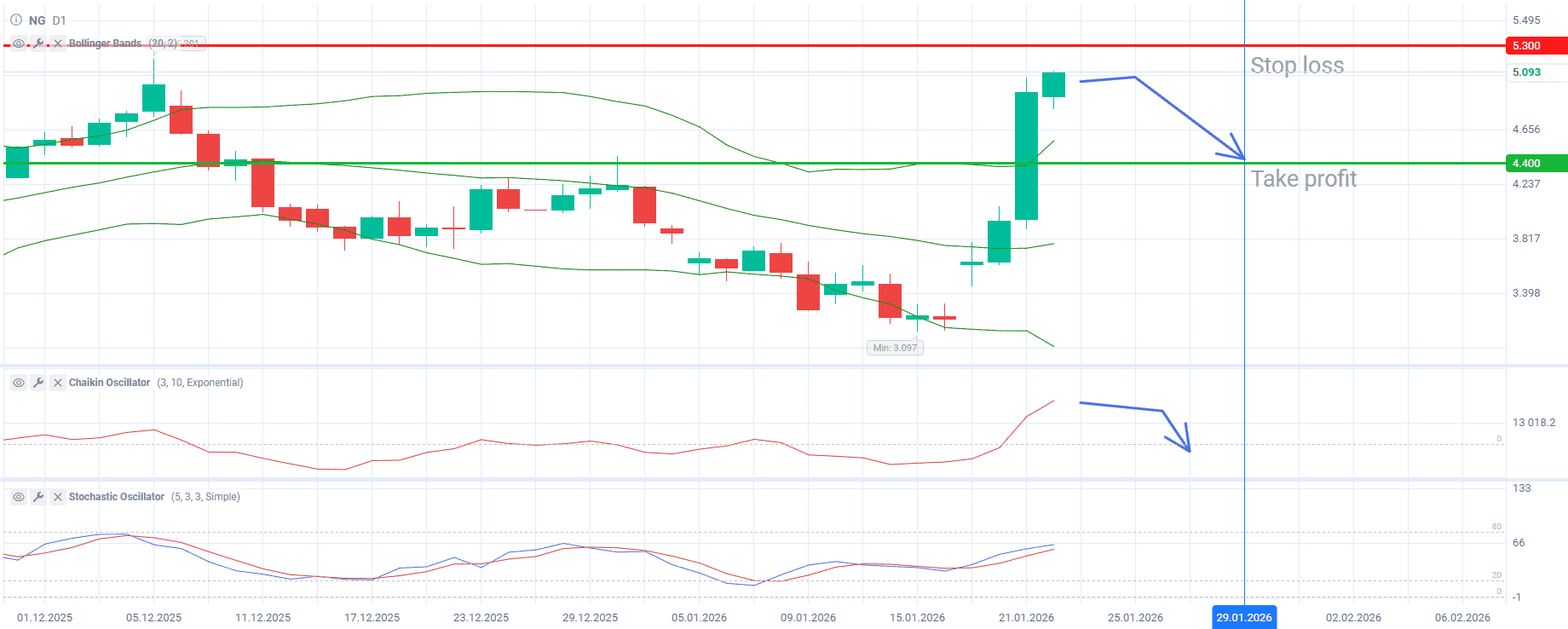 Продажа природного газа с целью 4,400 на фоне формирования локального максимума