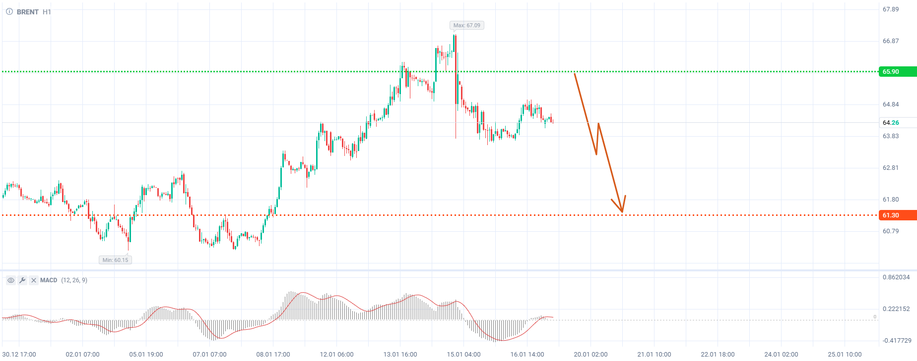 Продажа Brent от уровня 65,90