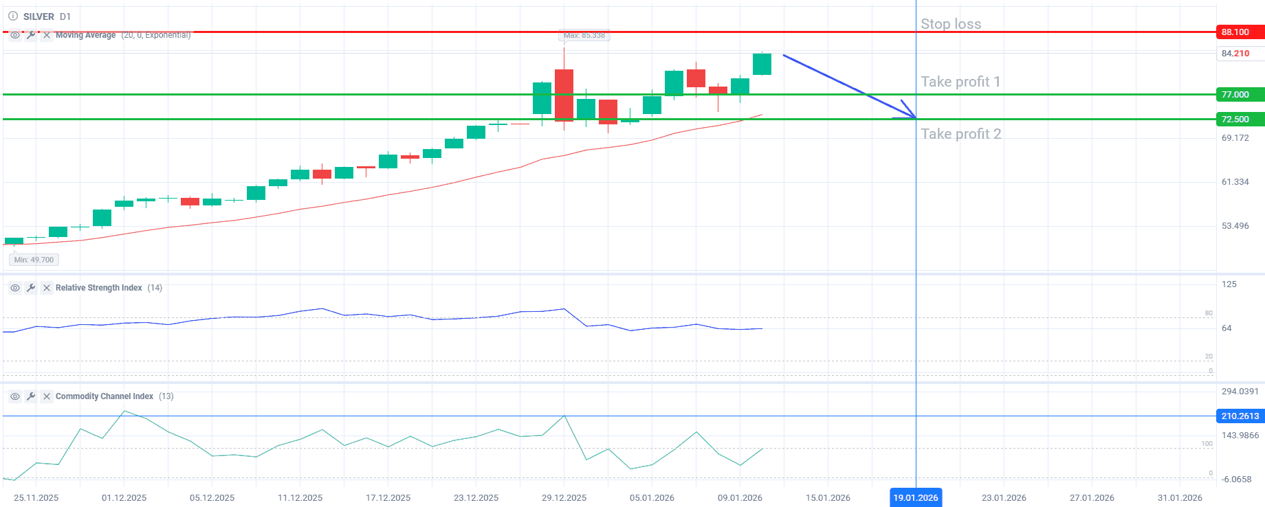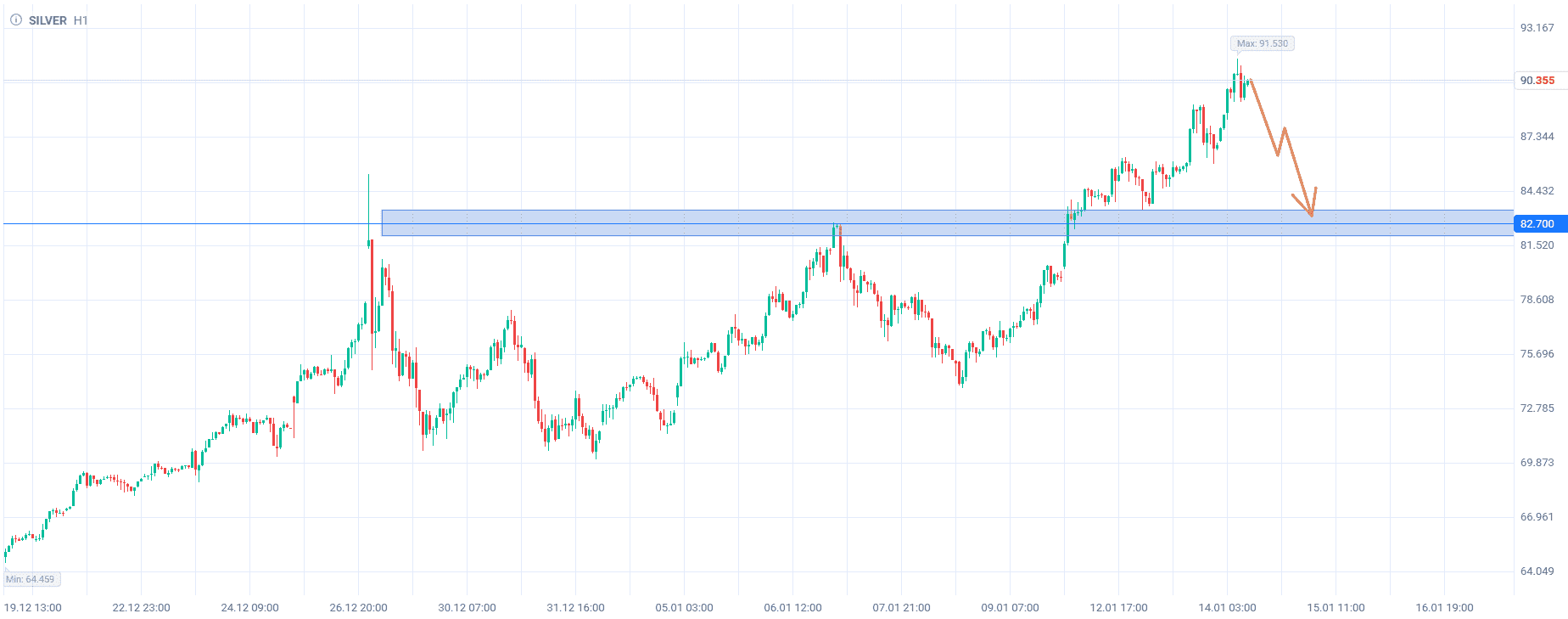 В случае схлапывания пузыря по серебру, продаем до $82.70