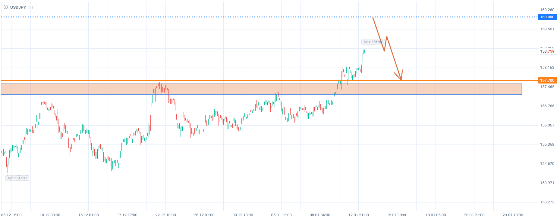 Продажа USDJPY при достижении уровня 160,00